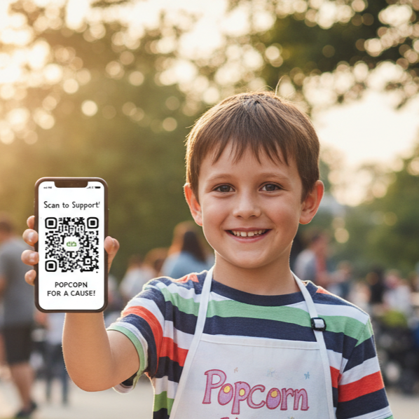 Once you’re set up, you’ll receive your very own QR code. Share it with friends, family, and anyone with a snack craving. They scan it, they order, and - boom! - your cause gets funded while they snack on gourmet popcorn.